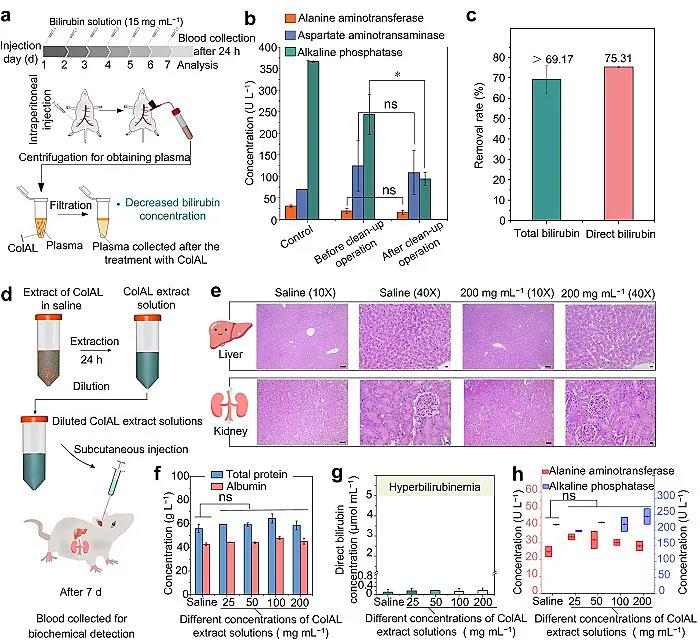 ColAL体内胆红素去除效果研究及其生物稳定性评价。