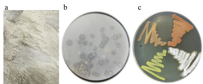 皮革制造的原材料往往是羊、牛、兔等毛皮动物的皮,含有大量的脂肪和蛋白质,极易受到多种微生物的侵袭,进而影响皮革制品的外观、物化性能等。在制革加工前,通常将大量的NaCl涂抹在动物皮的内外面制成盐湿皮保藏。该方法在抑制普通微生物生长的同时却为嗜(耐)盐菌提供了更好的繁殖条件,且部分微生物会分泌蛋白酶、角蛋白酶、脂肪酶、胶原酶等活性酶,进而导致盐湿皮出现局部脱毛、毛发松动、红斑、粒面损伤等迹象。因此系统研究并深入了解盐湿皮上微生物群落的组成以及时空动态,对进一步完善和开发高质量保藏动物皮的方法具有重要意义。