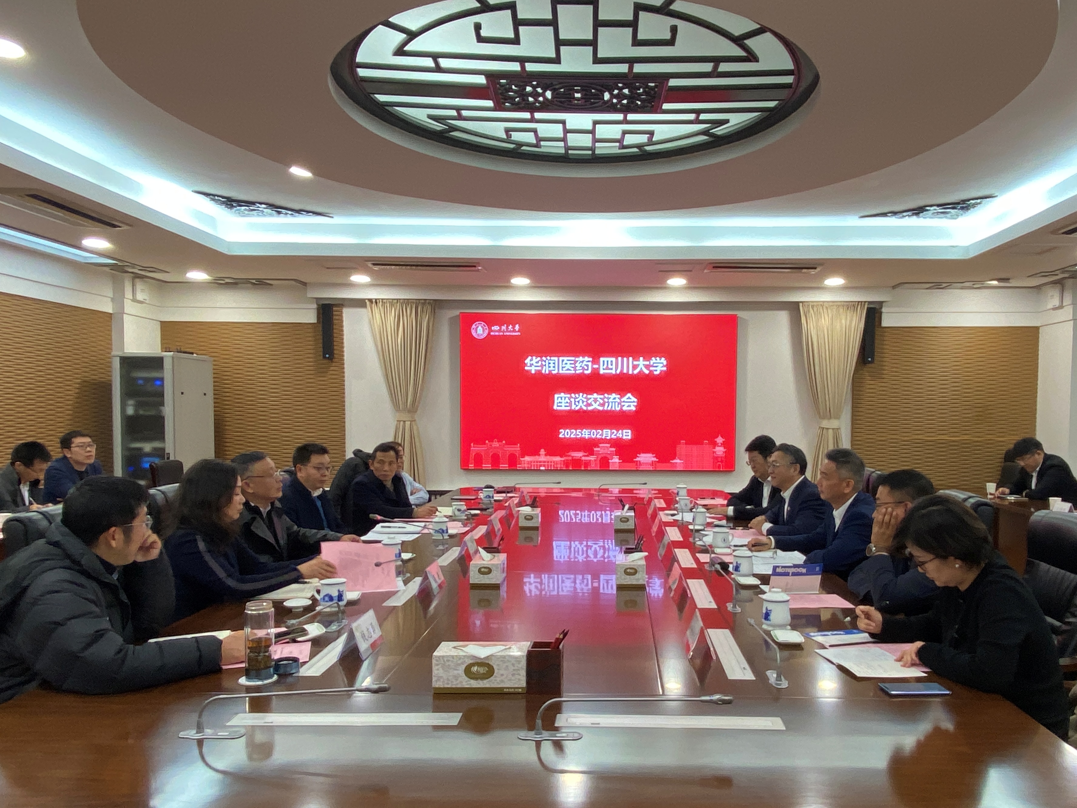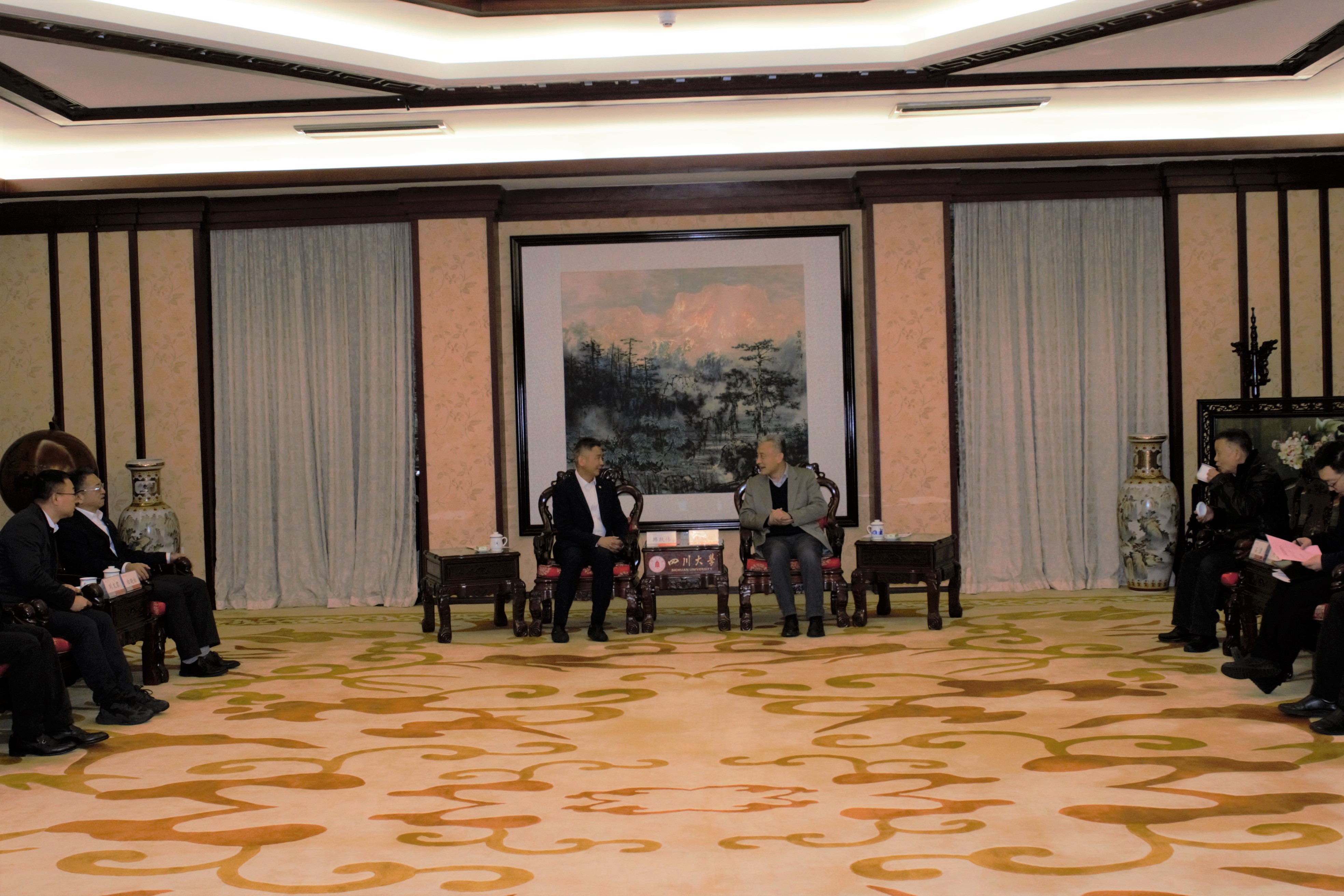 2月24日,华润集团公司副总经理韩跃伟、华润医药集团公司董事会主席白晓松一行来校访问。校长汪劲松在望江校区明德楼贵宾厅会见来宾。生物质材料绿色制造国家工程研究中心(原制革清洁技术国家工程实验室)主任石碧院士、副校长刘超、轻工科学与工程学院党委书记李天富,校企双方有关单位负责同志参加会见。
