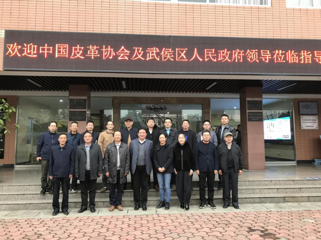 2020年11月24日下午,中国皮革协会理事长李玉中、四川省皮革行业协会执行会长李开华、河南省皮革行业协会理事长朱岩、广东省皮革协会执行会长王建新、温州大学美术与设计学院院长李运河以及武侯区人民政府相关人员等来工程研究中心参观交流。交流会在皮革楼209会议室举行,轻工科学与工程学院何有节院长、彭必雨副院长、肖凯副院长和生物质与皮革工程系李正军书记、林炜主任、程海明副系主任及部分教师出席会议。